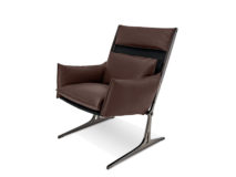 Fotel projektu Giuseppe Viganò o strukturze metalowej w wykończeniu micaceus brown, oxy grey, tytan lub czarny nikiel połysk.