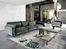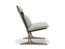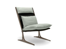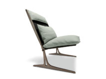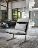 Fotel projektu Giuseppe Viganò o strukturze metalowej w wykończeniu micaceus brown, oxy grey, tytan lub czarny nikiel połysk. Siedzisko oraz oparcie z czarnej, elastycznej tkaniny neoprenowej. Dodatkowa poduszka siedziskowa i oparciowa z tkaniny lub skóry naturalnej w pełnej palecie faktur oraz kolorów. W fotelu pokrowiec jest ściągany.