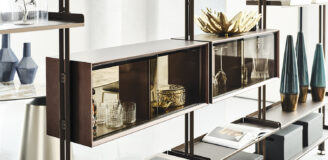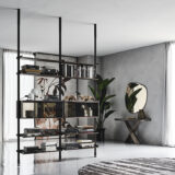 Freeway to modułowy regał, którego rozmiary można dopasować do każdej przestrzeni. Dzięki zastosowaniu odpowiednich wsporników może być zamontowany do ściany lub sufitu. Wsporniki, filary i półki w kolorze titanium (GFM11) lub bronze (GFM18) wykonane są z tłoczonej stali lakierowanej, a  pojemniki z lakierowanego MDF w kolorze titanium (GF11) lub bronze (GF18) i szkła dymionego.