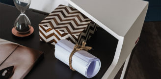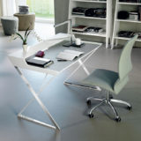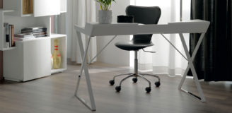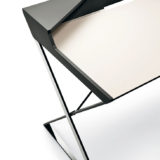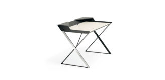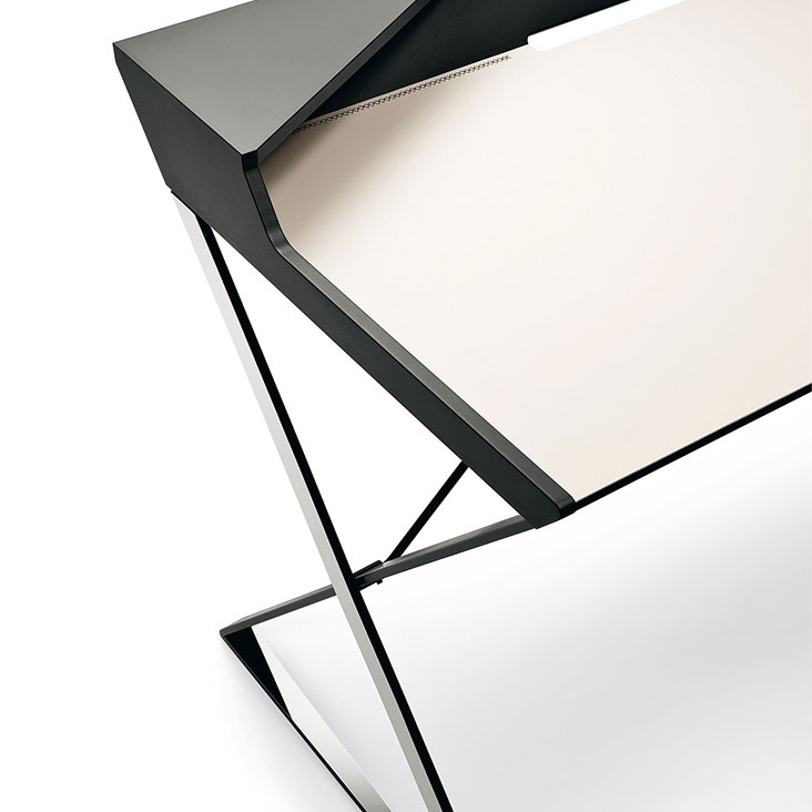 Biurko z nadstawką. Struktura z MDF w kolorze białym lub kolorze grafitowym z elementami ze stali nierdzewnej.